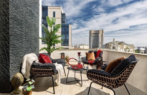 experience an incredible view of bucharest while sipping your morning coffee from your personal terrace! located right in the heart of the city, a couple of minutes walking distance until the old city and the house of parliament, our home will give you a unique & unforgettable stay in bucharest