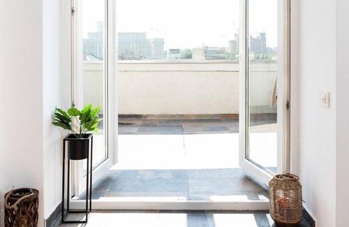 step inside our unique studio apartment home, featuring an amazing 45sqm open terrace overlooking the city center, 1 kitchen and 1 bathroom