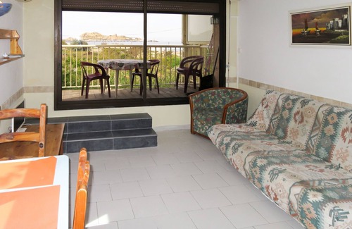 "résidence posidonie bodri - pigna", 2-room apartment 38 m2 on 1st floor Object suitable for 2 adults + 2 children. Simple furnishings: living/sleeping room with 1 double sofabed, dining table and TV. Exit to the balcony. 1 room, window onto the living room with 1 french bed. Kitchenette (2 gas rings, kettle, microwave, electric coffee machine). Shower/WC. Electric heating, air-conditioning. Balcony. Balcony furniture. View of the sea. Facilities: Internet (WiFi, free). Please note: non-smokers only. Maximum 1 pet/ dog allowed. Smoke alarm.