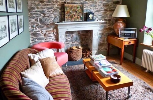 amenities: oil central heating with open fire Electric oven and hob, microwave, fridge/freezer, washing machine, tumble dryer, dishwasher, TV with Freeview, DVD, CD/radio, selection of books, games and DVDs. Fuel, power and starter pack for open fire inc. in rent. Bed linen and towels inc. in rent. Cot and highchair on request. Off road parking for 5 cars. Small lawned garden with patio and furniture. Two well-behaved pets welcome. Sorry, no smoking. Pub 1 min walk, shops 3 miles. Note: The second floor double bedroom is accessible through the twin bedroom.