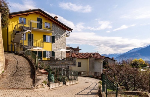Modern, beautiful apartment house "Raggio di Sole". 4 apartments in the property. Above Gravedona, in the district of Taiana 2.5 km from the centre of Gravedona, 20 km from the centre of Colico, 53 km from the centre of Como, in an elevated position on a slope, in the residential district, 2.5 km from the lake. For shared use: property (fenced). Heating available only from 15.Oct. - 15.Apr.. Motor access to 170 m from the house. 170 m steep footpath to the house. Public parking 170 m on the road. Grocery 1.3 km, supermarket 2 km, restaurant 2 km, bar 2 km, bus stop "C10 (Linea Como-Menaggio-Colico)" 2 km, railway station "Colico" 20 km, ferry "Menaggio" 18 km, sandy beach "Serenella" 3 km, grass beach "Lido di Gravedona" 3 km, diving center 3 km. Marina 2.8 km, golf course (18 hole) 21 km, sailing school 3 km, tennis 3 km, indoor tennis centre 3 km, sports centre 3 km, walking paths from the house 500 m. Nearby attractions: Palazzo Gallio-Gravedona, Chiesa Santa Maria del Tiglio-Gravedona, Menaggio, Bellagio, Varenna, Villa Carlotta-Tremezzo. Well-known ski regions can easily be reached: Madesimo. Well-known lakes can easily be reached: Lago di Mezzola, Lago di Lugano. Hiking paths: Livo-Crotto Dangri, Bodone-Alpe Motta. Please note: car recommended. The owner does not accept any groups. Part of the house is closed and unoccupied. Owner uses some rooms in the house.