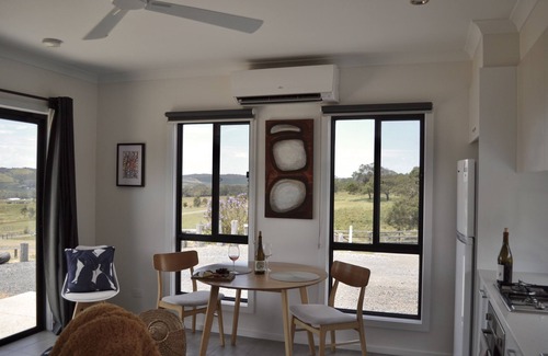 Couples Retreat at the foothills of Mount Cole in the heart of the Victorian Pyrenees. Set well away and private from the main house, with open living/kitchen, bedroom and large bathroom. Picturesque views of the valley with a mountain backdrop in an idyllic location where you can relax and unwind before touring the Pyrenees or explore the stunning mountain region. Leave uplifted with a feeling of calmness and rejuvenation.