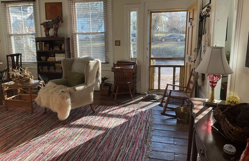 ellen, the host, lives in the back part of the house which is closed off from the art gallery room & upstairs The house is located on the residential side of Main St. (aka Railroad St.) & is 1/2 block away from restaurants & shops where you will also find Ellen’s Art Gallery & Gift Shop THROW ME A CARROT. She can be reached anytime if needed on her cell phone (preferably by text) during your stay..