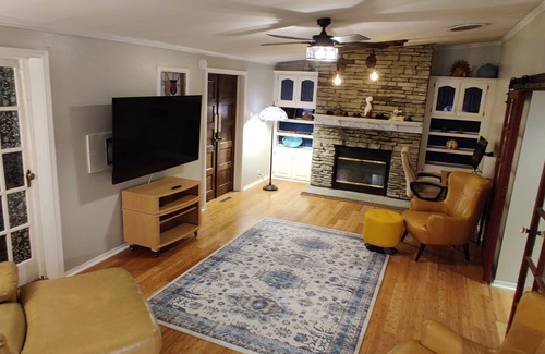 Situated in a quiet development with limited traffic and a peaceful walking area. Accessible, open spaces with ramps and grab bars. 2388 sq. ft. single-family home with four bedrooms and two bathrooms on a 0.34-acre lot. Bedsheets, blankets, quilts, comforters, continental and sleeping pillows, towel sets, bathroom rugs — included in the nightly rate and washed after each guest.