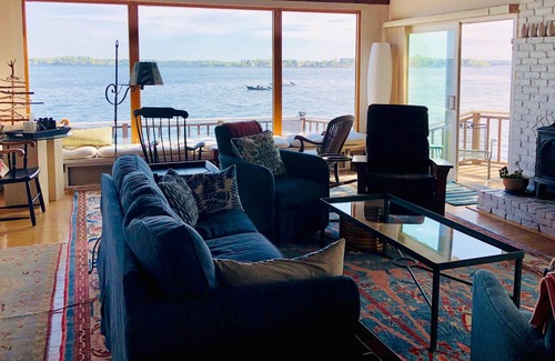 the property offers a large open living room with vaulted ceiling and panoramic view of the bay with marblehead, salem, and nearby islands across the harbor; 3 beautiful bedrooms with queen sized beds and sitting areas (all with water views and fresh linens); sunny kitchen (completely outfitted for your cooking and eating enjoyment..all you need to provide is the food); dining room with seating for 6 (additional table and seating available if needed); great spots throughout to curl up with a good book or to just sit and watch the water; piano for those who enjoy; truly a slice of heaven!!!.