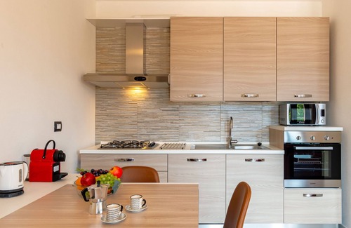 2-room apartment 65 m2 on 1st floor Bright, fully renovated in 2022, comfortable and beautiful furnishings: open living/sleeping room with 1 double sofabed, dining table and TV (flat screen). Exit to the balcony. 1 double bedroom. Open kitchen (oven, dishwasher, Gas stove, 4 gas rings, toaster, kettle, microwave, freezer, electric coffee machine, Capsules for coffee machine (Nespresso)). Shower/bidet/WC. Gas heating, air-conditioning. Heating available only from 15.10. to 15.04. Natural stone floors. Large balcony. Balcony furniture. Beautiful view of the lake, the mountains and the resort. Facilities: washing machine, baby cot for up to 2 year olds, hair dryer. Internet (WiFi, free). Garage (extra) (1 car). Please note: non-smokers only. it013249c2b29w647i