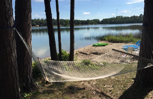 you will love our 400 feet of private lake shore, a powdery sand beach, and a crystal clear lake just 20 yards out our front door that's great for swimming and even better for fishing We have two paddle boards, a paddle boat, canoe, 8x8 ft swimming raft, inner-tubes, 3 kayaks and a brand new dock. Boat and jet-ski rentals are nearby. Our gradually sloping property and water depth is great for children - about 5 feet deep at the end of the dock. Our home and property is easy and convenient for someone with difficulty walking too. (This is a weekly rental, but if you are interested in more or less than a week, please message us.)