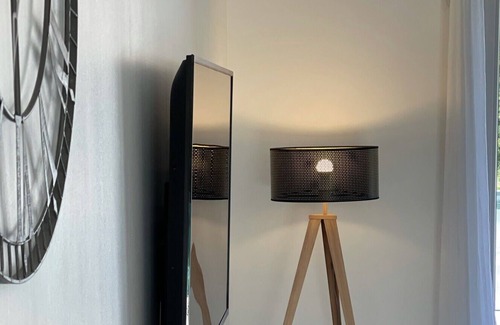 the living room also gives access, through a large glass door, to the garden of approximately 450m² where you will find everything you need to have a good time outside; table, chairs, deckchairs to enjoy the sun and of course the essential barbecue for summer or winter for the bravest