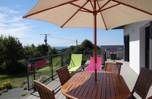 At the entrance of Presqu 'island of Crozon and at the foot of the Ménez Hom, recent construction with garden of 3000 m², rental of an independent house (4-6 persons), all comfort, with panoramic views of the bay of Douarnenez, 2 km from the large sandy beach of Pentrez for a break in a quiet and relaxing environment.