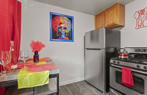 Sheridan is an affordable option perfect for smaller group or family getaways. Located just 15 minutes from downtown Denver and the iconic Red Rocks Amphitheater, and only four blocks from Sloan's Lake Park! This two-bedroom, one-bath home features spacious rooms with king-sized memory foam beds. Enjoy indoor entertainment with a retro Pac-Man arcade game or unwind with a 50-inch Roku TV. Step outside to a private, enclosed backyard with a hot tub, dining area, and gas grill. book your stay at sheridan today!