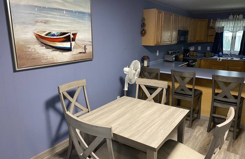 newly remodeled private ranch style home located right in the heart of the island’s downtown put-in-bay The rental has two bedrooms, a queen pillow top luxury bed in each; one full large bath with tub, central A/C, wireless internet, smart TV, sectional sofa, an additional queen air mattress, fully equipped huge kitchen with plenty of seating and on-site parking. Additionally, an amazing resort pool, lazy river, hot tub & swim up bar directly out back door (open summer seasonally). The home is family friendly, and all furnishings are new and tastefully decorated in a lake/island/nautical style. Located within steps of restaurants, entertainment, parks, public docks, shopping and National historic monument. So, Y-Knot Stop Inn?.