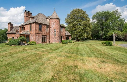 the castle is made of a main house and a separate carriage house The main house has 5 bedrooms and 4.5 bathrooms, and is for rent. The carriage house is used by the owner.