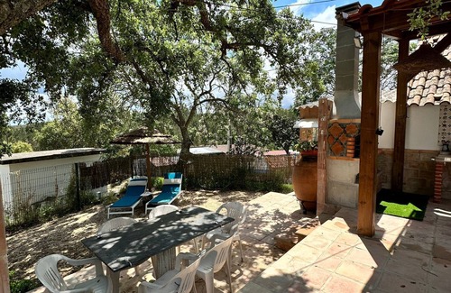 refúgio da águia is 5 min away from montargil dam It is located in a quiet area full of nature. It has an outdoor area with swimming pool, barbecue area and leisure. Its view on the hillside invites you to an evening full of tranquillity. The Refúgio is a totally restored accommodation keeping some old features and the character of the accommodation. It has 3 connecting bedrooms. A double bedroom in the centre and two single bedrooms on each side. Ideal for couples with 2 children.