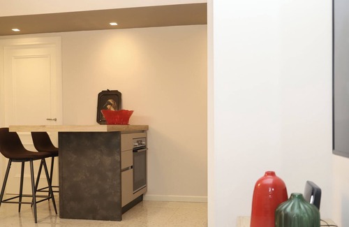 the apartment is on two levels connected by an internal private staircase The ground floor consists of an independent entrance and a service office, the first floor of a large living room with sofa bed, 55" SMART HD TV, a kitchen area equipped with appliances and new dishes, a bedroom with large wardrobe Poliform and Frette linen.