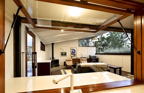 inside refurbished kitchen, bathroom and 2 bedrooms provide a level of accommodation you need Ancient, rare Huon Pine dining table made by local craftsman to owner design, Bose sound systems - including 5:1 cinema sound, 2 fireplaces with provided firewood, 3 airconditioners, 3 smart televisions, LED lighting and bespoke craftsman-built fittings, 2 fridges, deep freeze, separate Euro styled “galley” laundry, Netflix, unlimited broadband/wifi, Blanco and Smeg appliances and indoor/outdoor access via a 2 meter wide Servery window opening to the outdoor space are for your enjoyment.