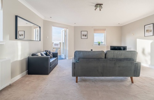 This gorgeous two-bedroom flat in Dalgety Bay near Dunfermline overlooks the coast and the magnificent Forth Road Bridge. With a lovely balcony space and full amenities at your disposal, this is the perfect home away from home for anyone looking to commute around the Fife or Edinburgh areas.