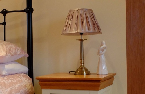 stable cottage's bedroom - a real masterclass in comfort, the bedroom has it all - spacious with thick pile carpet, and a majestic bed as it's centrepoint, comfy pillows, duck down duvet, bespoke bed linen, fluffy bath sheets, lighting controlled via dimmer switch so you can choose your optimum setting..... a great night's rest and relaxation seems guaranteed.
