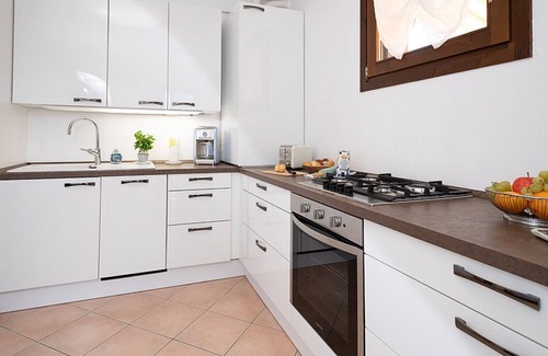 Elegant three-rooms apartment of about 65 square meters, located in Lazise, about 1200 mt from the historic center and the beach. The apartment is located in a small and quiet apartment complex, can accommodate up to 5 people and has a bright living area with a spacious kitchen equipped with fridge, gas stove, oven, freezer, dishwasher, dishes / cutlery, cooking utensils, coffee maker and toaster. The living area is also equipped with a foldaway French bed, a comfortable sofa, satellite TV, wifi and air conditioning. Spacious double bedroom, second bedroom with two single beds.Bathroom with washing machine and shower. The spacious terrace with wonderful lake view will welcome you for dinners at sunset and outdoor lunches thanks to the presence of a comfortable awning. The apartment complex has a lovely swimming pool (guaranteed opening period 15/05-30/09) and a garden for common use. We recommend this property to quiet guestslooking for a well-kept context. Public parking near the property. Animals are not allowed.The total price consists in:- RENTAL FEE paid directly to the owner of the property- GUEST SERVICES (check-in, check-out, bed linen, towels, welcome kit, assistance and support, professional cleaning, reservation management, commission paid by the host to the portal, mailing and communication, etc.) offered by Regarda Travel to the tenantCompulsory tourist tax to be paid cash at the arrival.Compulsory refundable security deposit to be paid by credit card on arrival euro 300.00Regarda Travel is a property management agency located in Lazise, on Lake Garda, with years of experience in tourism and hospitality. We manage over 80 houses, villas and flats with our guests’ satisfaction. We live in the area and therefore know it very well, so we can proudly show you the best experiences you can enjoy in this well-known area of northern Italy. We can recommend the best guided excursions to explore the beauty of Lake Garda, Verona, Milan, Valpolicella, Venice and Mantua, boat tours, bicycle tours, food and wine tours... and much more! We are also at your disposal for booking Opera tickets in the Arena of Verona, rental cars, private transfers, discounted tickets for the main thermal parks and amusement parks such as Gardaland, Caneva, or Movieland..