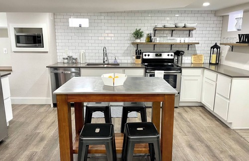 A warm 1 bed/1 bath bungalow located in Wash Park, one of the most desirable neighborhoods in Denver. This space features a cozy, modern style with a fully outfitted black and white kitchen, fast wi-fi and a smart tv. Plan an excursion into nearby downtown Denver, explore the local cafes and taverns or go for a scenic jaunt around the park. We are situated among stunning houses, a beautifully maintained park with two lakes, and winding trails for running and biking.