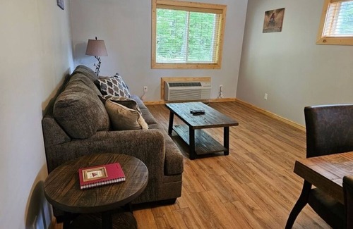 living room: relax and unwind with comfortable seating, a sleeper sofa, and room for everyone to gather after a day of lakeside adventure