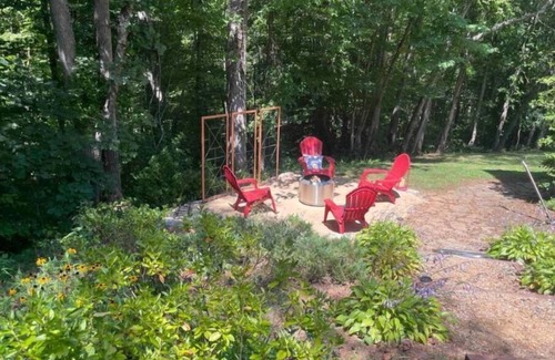 spacious 2 bedroom and full bathroom with dedicated work space and beautiful views of surrounding woods through large picture window in living room and kitchen with separate dining area Wonderful gathering area with full size sleeper sofa and smart TVs in bedrooms. Enjoy a cup of coffee and read a book on the private patio while listening to birdsong surrounded by nature.