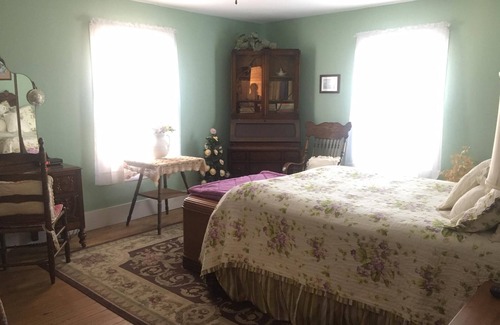 inside, you will feel right at home with the antique furnishings, a country eat-in kitchen with fireplace, and a large dining room and living room also a fireplace There is enough room and privacy for at least eight guest to stay, even more for dinner! And, of course, we have added all the modern conveniences for your comfort. The upstairs bedrooms all have TV's for your enjoyment.