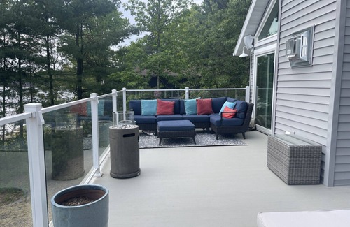 Relaxation awaits in this newly remodeled Lakehouse nestled in the woods with 160 ft of frontage on a beautiful, no wake lake. Excellent swimming with crystal clear water, sandy bottom and beach with a gradual water depth increase (great for swimming kids); great fishing too (even off the pier)! Water Hammock, swim island and long pier.