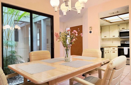 ► dining area with seating for 4 and garden atrium view