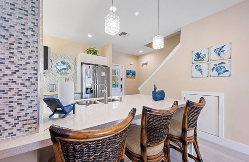 This beautiful townhouse was remodeled in late 2021 with a modern tropical inspired scheme. High speed internet -1,000mbps and large 4K smart tv's provide great entertainment. The patio's lush landscape with torches create ambiance at night and during the day the water sounds over the plunge pool allows for relaxation and fun. Take a break and lounge, have a morning cup of coffee while nature wakes up. Explore fun tropical activities and great restaurants. Take a drive to Key West, see beautiful turquoise waters and delve into Conch life. This property is not associated with Hawks Cay Resort and does not have a boat dock nor parking for boats..