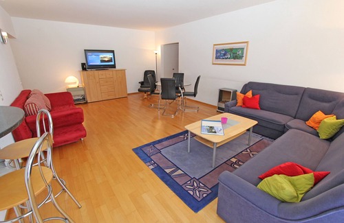 Ascona is a neighbor place of Locarno. The small fisherman village is today internationally well known prominent meeting place. That 4-floors flat house lies at sunny position at the village beginning and has combined outdoor/indoor pool (6m x 4m, outside open from ca. middle May until ca. middle September, weather dependent), sauna and garden for common use. Balcony. Elevator. Driveway until house. Private parking in garage. Bus ca. 200m. Village center, shop ca. 500m. Lake ca. 800m. Beach and bathing-establishment, golf ca. 1,8 km. Bed, kitchen linen available. Pets permitted.