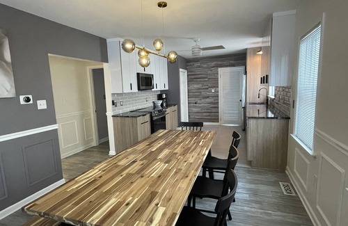flat-screen tvs in bedrooms and the living room High-speed internet, YouTubeTV, ROKU streaming player. The Kitchen has an electric stove, microwave, coffeemakers, Keurig, pots & pans, dishware, silverware, glassware, blender, and refrigerator. central air/gas heat, ceiling fans in all rooms, except kids' room for safety issues, washer/dryer, assigned parking at the rear entrance, and so much more!