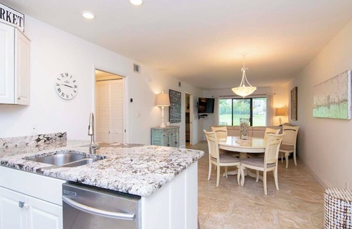 1st floor 2br-2ba unit with lake and golf course views Unit has been completely remodeled with great finishes. Large open floor plan with large kitchen flowing into dining and living rooms make this a special place for family or that perfect golf trip with friends.