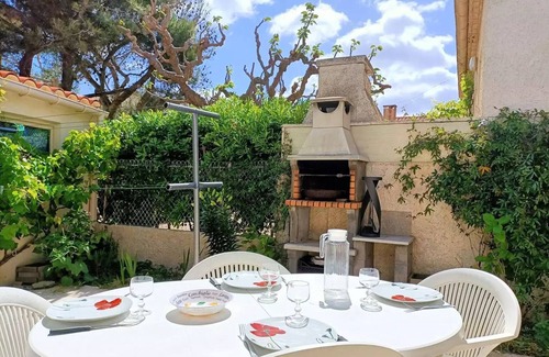 Accommodation: Charming family house in Saint Pierre La Mer, 200m from the beach, equipped and furnished for 10 people, fully air conditioned, outdoors and parking.Ideal house to enjoy a holiday with family or friends, renovated to taste of the day. Exterior courtyard at the front of the house with a parking space followed by a seenda at the entrance. Fully equipped kitchen, open to a large living room with TV corner and dining area, direct access to a spacious courtyard at the back of the house with barbecue and outdoor furniture.Bathroom on the ground floor and separate toilet. Still on the ground floor, you will find 2 bedrooms with double bed in 140, with storage, cupboards and windows. Upstairs, a second separate toilet, a master bedroom with double bed 140 + cot and dressing room. Another bedroom with two bunk beds and a single bed + storage. Last bedroom with double bed 140, storage and direct access to a solarium. Optional extra services: linen is not provided but it is possible to book it in advance and to collect it at the key-collection (double bed kit: 12.00 euros/ single bed kit: 9.00 euros / towel kit: with a large and small towel: 8.00 €).Rental WIFI BOX : 39 € / weekYou will be asked to regularize the security deposit of your rental, the link "swikly" will be sent to you 10 days before your arrival and will be required to do so before your arrival (not in cash or in cheques, costs will be invoiced by the operator).We are approved Holiday Cheques.Not suitable for PMRs.The keys are to be recovered from Citygest agency between 3pm and 6pm in summer season. The tourist tax is in addition. Information on the risks to which this property is exposed is available on the site Georisques " www.georisques.gouv.fr "