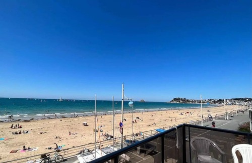 Accommodation: Typical house ideally located on the dike of Val-André with splendid sea views.This property offers you for your stay :Ground floor:-One entry; -A fitted and equipped kitchen with fridge/freezer, hood, induction hob, dishwasher, sink, microwave, oven, coffee maker, coffee machine, kettle, toaster, - A living room with sofa and armchair, TV, dining table 8 people, bay windows with balcony on the dike; - Bathroom with shower, sink, towel dryer and washing machine,-W.C. separated.-WifiFirst floor: - Two bedroom with 1 double bed (140*190cm) with balcony access with a full sea view; - A bedroom with 1 double bed (140*190cm) with balcony access with a full sea view; - One bedroom with 1 single bed (90*190cm).All rooms on the 1st floor have a water point.On the second floor:- a sea view bedroom with 1 double bed (140*190cm) and 1 single bed (120*190cm)- One bedroom with 2 single beds (90*190cm).-A bathroom with shower, sink, toilet.Direct access to the dyke promenade.Optional: -Menage - Leasing.-baby equipment