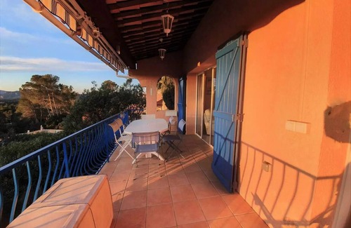 Accommodation: This detached villa with private swimming pool, ideal for family holidays consists on the first level of a living room with beautiful terrace, an equipped kitchen, an independent toilet, a bathroom and an office with a sofa click clac for 2 people, on the lower level 3 bedrooms: one with two single beds, one with a double bed and a baby bed, one master bedroom with dressing room with a double bed in 160, one bathroom with Italian shower and bath bath bath and toilet. Living room and rooms are air conditioned. House equipped with wifi. Washing machine, dishwasher and all comfort equipment for your holiday!The Plus of this holiday home in the Var: superb open view, quiet, vegetation with all at the end of the garden rewards the beautiful beach around the pool, shelter with sunbathing, shaded part, outdoor shower, babyfoot children. Household end of stay included.Attention, however, a few steps from stairs to access the various corners of the garden.
