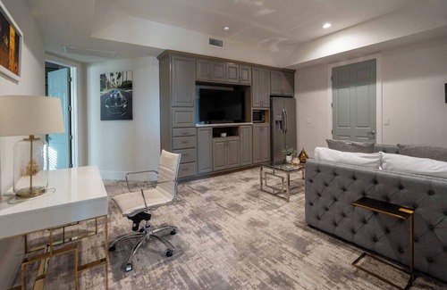 inside, enjoy chef-inspired open-concept kitchens, expansive living and dining areas, three indoor fireplaces, and designer furnishings with premium bedding throughout Every bedroom features an en-suite bathroom, and two suites include private sitting areas that can double as extra sleeping space—perfect for families with kids or guests seeking added privacy. Multiple dedicated workstations make this home remote-work friendly.