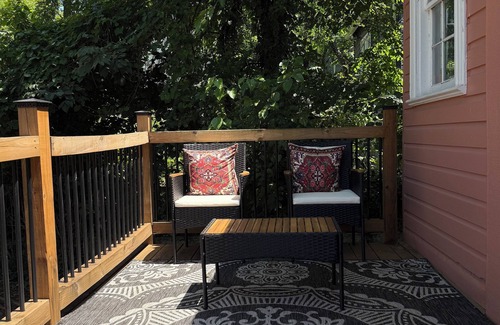 Escape to a historic 1870 4-bedroom house in the heart of Berkeley Springs. This delightful property boasts 2 queen beds, 1 full bed, and 1 trundle twin bed, perfect for wedding parties, reunions, families, or groups of friends. Two full baths include restored 1920s clawfoot tubs; 1/2 bath on the main floor. Enjoy the private backyard with a gazebo, deck and English gardens. Each room of the house is filled with unique art from around the world. The formal dining room seats eight and includes a hutch full of lovely china. The adorable kitchen is fully equipped. The Butler's Pantry includes mixers and bar amenities. Two adult bicycles are available to you. All that the Town of Bath has to offer is just steps away. We've lovingly restored this beautiful home, added central air and ceiling fans to supplement the radiant heat throughout. WiFi, hair dryers, and other special amenities will make for an unforgettable stay. We hope you enjoy what our place and Berkeley Springs has to offer..