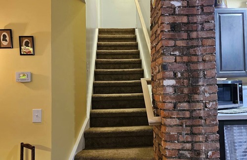 The Lodge at Tartan Acres Alpacas is waiting for you. Comfortable, peaceful, and welcoming, this circa 1900 rural farmhouse has been restored and enlarged creating your home away from home. A short walk up the ramp leads to the front door and enters into the open-beamed and comfortably appointed living room. Here you are welcome to snuggle under a blanket in front of the gas fireplace and choose your entertainment from the smart TV, CD, or DVD player. A brand new kitchen is fully functional for cooking and baking. The 1st floor bedroom (king) is adjacent to a large handicap ADA/accessible bath. Two bedrooms (queen/twin), a half bath and a shower room are located on the 2nd floor. The gameroom on the 3rd level is loaded with games and DVD’s, (DVD-playing TV). Enjoy the spectacular views from the front porch or relax on the back deck. A Quick search for nearby restaurants will include American, Middle Eastern, SE Asian and Italian. If cooking is your thing, the local grocer is 10 minutes away. This awesome vacation home coexists with 40 alpacas located across the road where interested parties can pre-book a tour and learn all about raising fluffy livestock and/or visit our shop. Thinking of starting your own hobby farm? We will deduct a portion of your fee from a purchase of our livestock. Too many people in your party? Ask about available rooms at the adjacent Victorian era AIRB&B in advance of your stay.