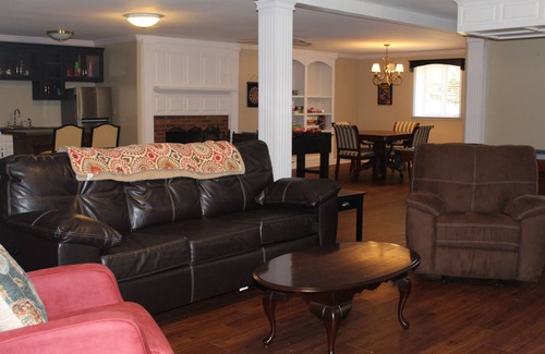 the 5600 sq ft. house has everything you can think of for a home away from home. Basement has a kitchenette, as well as pool and foosball tables. The house also has a huge pool. Beautiful fire pit outside.