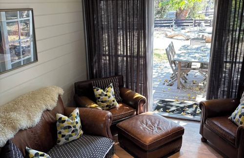 Mulberry Cottage, on Donkey Run Farm, is situated in rural Wallington, five minutes drive to Ocean Grove beach, wineries, Adventure Park, and all the area has to offer. Nearby are the townships of Barwon Heads and Ocean Grove, and our favourite Cicchetti Bar, 'Mona' just a couple of hundred metres away on Wallington Road, arguably the area's best kept dining secret! The property is a retro-inspired guest cottage located in one of the Bellarine's most coveted locations. The cottage was renovated from one of the farm's original buildings and completed in 2022. Mulberry Cottage will surprise and delight with its charming and unique features: retro-inspired styling, an open fireplace for cosy nights in, a bathtub with hot and cold running water on the back deck overlooking the paddocks, and a loft with single bed (suitable for over 12 years) in the second bedroom, ideal for children and families. The cottage also has reverse cycle air-conditioning and heating, and ceiling fans. We also offer all of the home comforts such as bathroom soaps and shampoos, hairdryer, washing machine, iron and board, coffee machine, and kitchen basics such as tea and coffee, and other basic supplies.