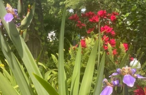exploring the grounds--the backyard is a relaxing garden sanctuary You are welcome to look around &/or hang out on the patio. The fruit tree near the camper is a centennial kumquat. Past the 2 oaks are a tangerine, persimmon, plum, pear and another plum. Blackberries are in the side yard as well as a peach and another persimmon. In the back is a key lime, banana trees, Avocado and a guava. You are welcome to snack and I will gladly share cuttings or some of the babies growing under the guava tree.