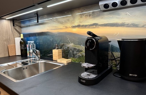 "rezidence krakonoš 105", 2-room apartment on the ground floor Spacious, luxurious furnishings: living room with dining table and TV. 1 room with 1 x 2 bunk beds, 1 double bed and 1 pull-out bed. Kitchenette (oven, dishwasher, 4 ceramic glass hob hotplates, microwave, freezer, electric coffee machine). Shower/WC. Balcony. Balcony furniture. Beautiful view of the countryside. Facilities: Internet (WiFi, free). Parking. Please note: suitable for families. Non-smokers only.