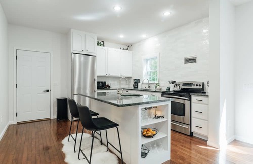 our kitchen is newly renovated and well-stocked with everything you need to prepare a delicious meal away from home Spices, oil, and vinegar, are provided, as well as coffee, tea, and Keurig pods. There are plenty of pots, pans, baking sheets, bowls, as well as a toaster oven, blender, rice cooker, many other small appliances. For your perfect brew, there is a drip coffee maker, Keurig, French press, coffee grinder and Espresso machine.
