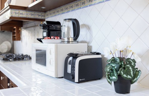 the entire apartment has truly spectacular parquet flooring, the living room is equipped with a 4k ultra hd tv with smart tv (netflix, youtube etc..) and a wi-fi connection. The elegant ceramic kitchen is equipped with every comfort: Nespresso coffee machine, kettle, microwave, toaster etc... will be perfect for your meals.