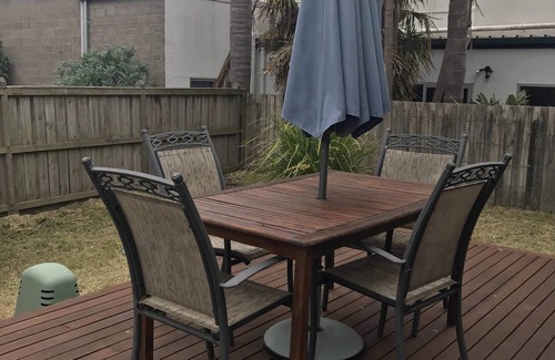 gorgeous stand alone double storey fully fenced property located opposite the rhyll jetty, and within easy walking distance to cafe, boat ramp and park Two bedrooms one with ensuite, spacious kitchen with stone benches, large main living area with open wood fire and reverse cycle heating and cooling. Large deck with outdoor setting for entertaining at the rear of the property the balcony at the front of the property is not available for use. there are two bedrooms one upstairs and one downstairs there is a bedroom upstairs at the front near the balcony that is not available