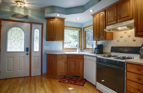 upstairs, three additional bedrooms are yours to retreat to each evening Each room is designed with lake vibes and comfort so you'll be more than at home during your getaway at Riesling Rod and Reel. Completing the second floor is the second full bath.