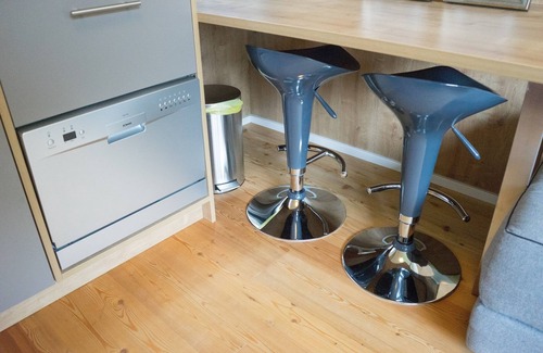 - small fully equipped kitchen with dishwasher, 2-induction hob, coffee machine, kettle and toaster