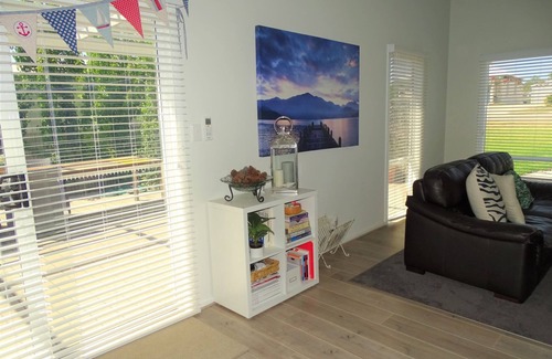 property details: 3 bedrooms - queen, 2 single, queen Sleeps 6; Quilts and pillows provided – BYO sheets, pillowcases, towels, bathmats & tea-towels OR optional linen hire $110 available through Country Getaways office; optional linen service fee $50 for beds to be made up. Main bathroom with bath & shower; Separate toilet; Ensuite bathroom adjoining queen bedroom with shower & toilet. Reverse cycle split system air-conditioning in all bedrooms; Ceiling fans in bedrooms; Reverse cycle split system air-conditioning in lounge room. Large smart television with USB port in lounge room; Queen bedroom has large television with USB port. DVD player; Blu-Ray hard drive; Board games; WiFi for guests. Well equipped kitchen with gas stove, microwave, coffee machine (guests need to bring Nespresso-compatible pods), dishwasher & large fridge/freezer. Front load washing machine; Iron; Ironing board. Shaded outdoor entertaining & seating area with pergola; Hooded gas barbecue; Weber Q barbecue. Secure rear yard; Fire pit (guests need to bring their own wood & observe fire regulations); Fish cleaning facilities. Lawned area at front of house. 5 minute walk to beach. Off-street parking in driveway for 2 vehicles with room for a boat. Sorry, pets not permitted.