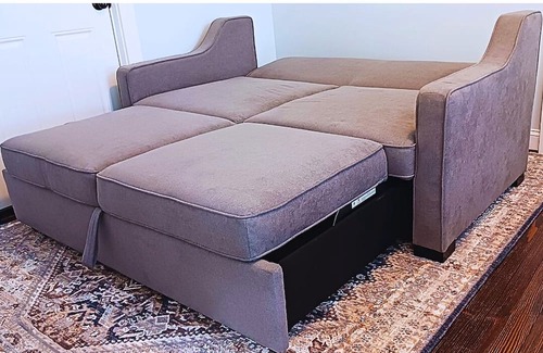 the river retreat offers a luxurious hybrid queen bed and two additional sleeping spaces in the adjoining room with a bunk bed and sleeper couch that converts The main room includes a desk with a dedicated work space, chargers, and fast Wi-Fi.