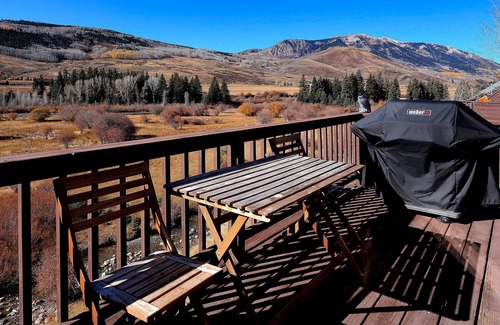 serene, spacious townhouse with incredible views in cb south 3 bed/2 bath, the home is a fantastic base for experiencing all of the beauty of Crested Butte with friends or family. Relax on the deck and spot deer and other wildlife while enjoying sweeping views of the mountains and river by day and the stars at night.